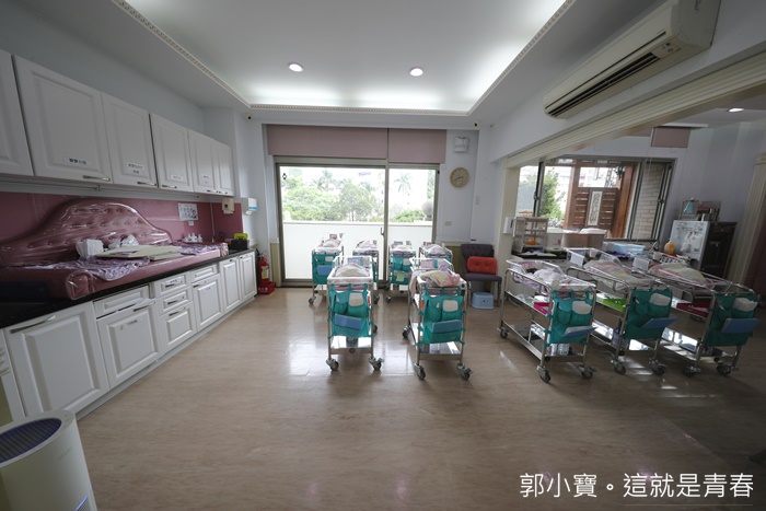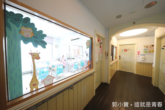 | 二樓的部分就是嬰兒室了,嬰兒室的部分也控管的很嚴密,可以來嬰兒室外探望嬰兒的除了入住的媽咪跟先生以外,就是只有開放男女雙方家長可以來嬰兒室外探望小孩,嬰兒室外每天都會消毒跟放置紫外線消毒,時間都是在半夜,感覺福臨產後護理之家對這方面真的非常要求。 |