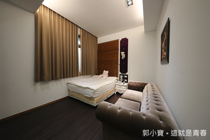 每一間房間的挑高都夠高,不會讓人感覺有壓迫感以外,因為是獨棟大樓且看起來以前應該是住宅區,所以牆壁都是磚牆隔間,隔音效果也會比較好,窗簾布都是防火的,拉光窗簾發現遮光效果真的很好,接待人員也跟我們說全部都是防火建材,安全保證沒問題。