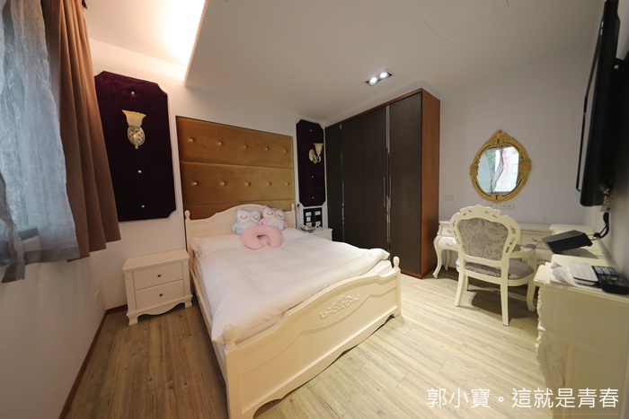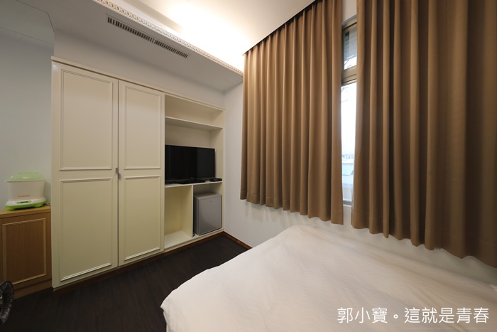 | 床鋪的對面就是電視跟衣櫃,中房比起小房應該是算格局也好了一些。 |