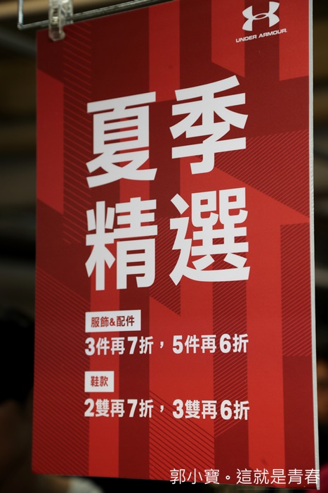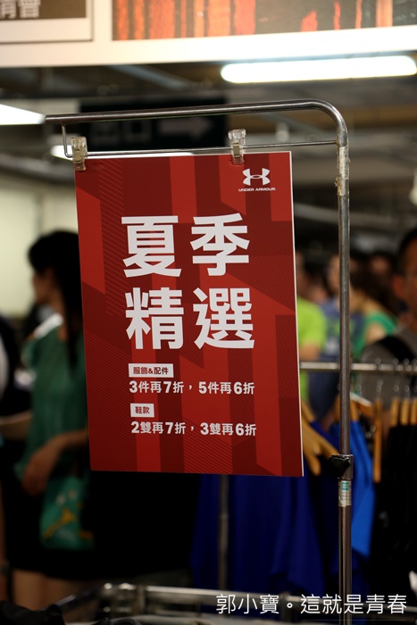 | 會發現這一場Under Armour的特賣出清真的是意外發現,因為這天特地來到台中跟冰箱哥約好要去吃胖大爺鐵板炒飯麵,因為我到達台中的時間早了一些,所以就順路先過去日曜天地逛逛順便買點東西,沒想到就發現了這一場Under Armour的出清特賣會,真的有一點嚇到我了,因為我目前還沒聽到Under Armour有特賣出清的風聲,所以趕緊拿了相機拍了一些回到家就趕快整理一下照片跟大家分享這個好消息,雖然晚了幾天,但是Under Armour的特賣出清似乎持續到6/24,所以還有10來天大家要趕緊手刀速度去搶先戰利品回來,我個人也搬了一堆,真的超振奮人心的,以前因為Under Armour的商品價位真的超高且很少打折,現在一打就是五折真的超好搬的。 |