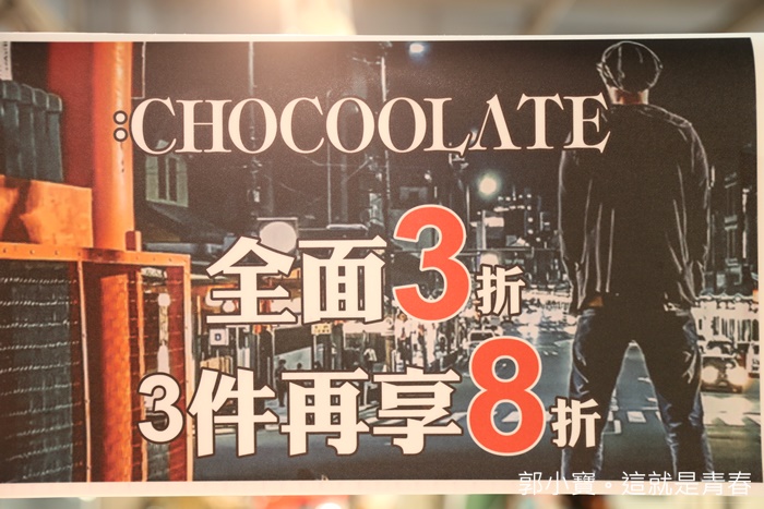 我想大家比較熟悉的就是:CHOCOOLATE這個品牌了,這超多人再追的潮牌這次真的殺到超低的,想不到幾個月前才帶老婆特別去澳門免稅店買它們家的衣服,沒想到現在給我偷偷特賣出清,且價格還那麼殺,讓我頓時眼淚都流了下來。