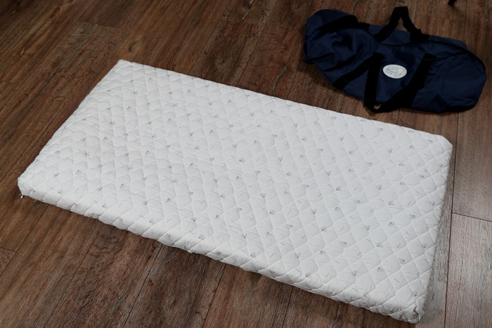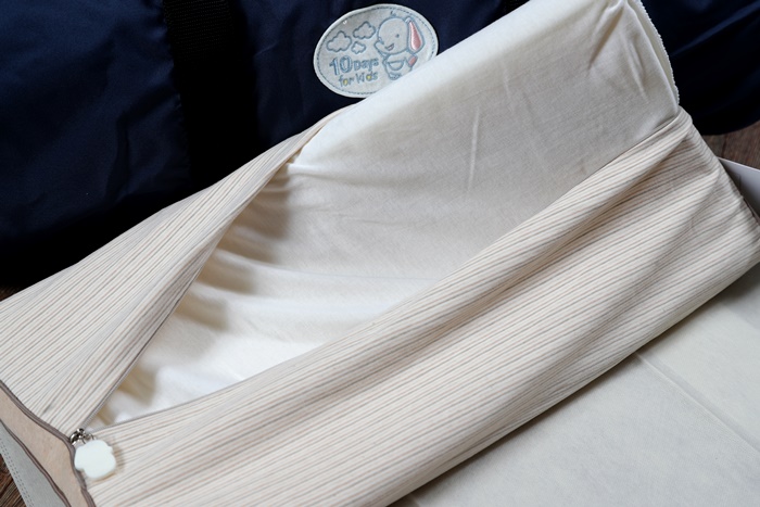 | 接下來就是要來開箱水洗透氣嬰兒記憶床墊了,外面還有一個布包包著床墊,收起來存放也很方便,如果出去旅遊也可以直接放在袋子裡面直接帶走非常方便。 |