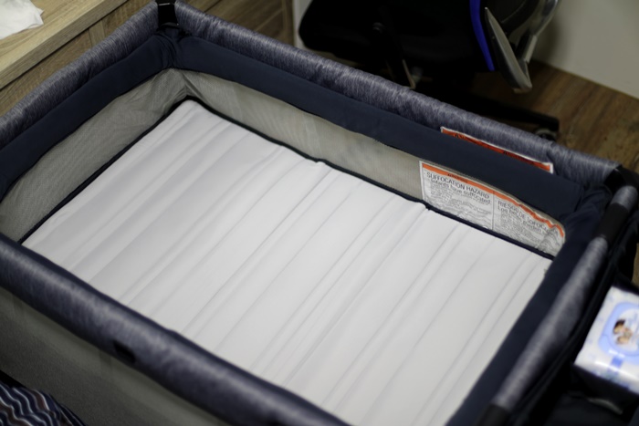 | 立馬放到遊戲床上,寬度基本上嬰兒床跟遊戲床都一樣,長度可能會有不一樣,但是基本上都是可以放的,Chicco的遊戲床長度就短了一點,但是放進去我覺得還滿不錯的,反摺成l型的地方以後可以給小朋友當靠墊。 |