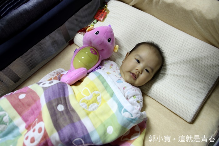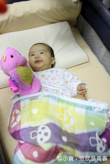 | 平常Cola真的只要一躺在嬰兒床就會翻來動去、滾來滾去的,但是頭枕的設計真的可以讓他保持著穩定度,且頸椎也得到良好的支撐,爸媽跟岳父岳母來到家裡面看到這一組床墊跟頭枕也都大讚品質很好,且它們的寶貝孫女看起來非常開心XD |