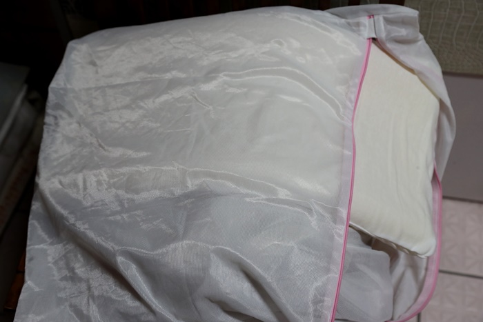 | 脫水的部份記得將頭枕放入洗衣袋裡面,記得頭枕的部分一定要放入洗衣袋裡面,以免勾破內網失去了保護枕芯的功能,泡在洗臉盆內按壓,然後再用低溫水沖洗持續按壓即可。 |
