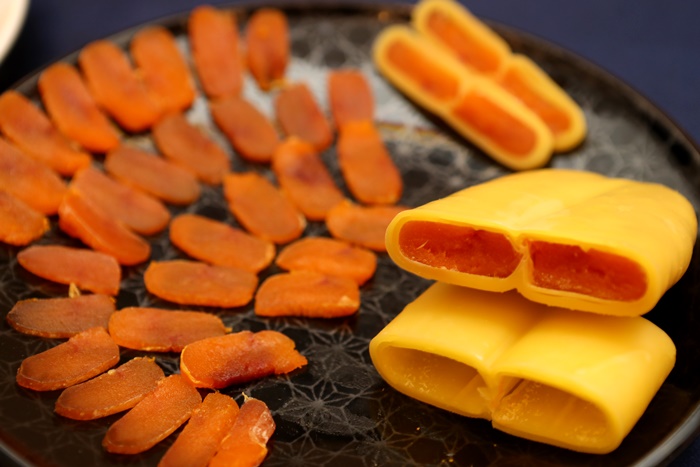 | 後來現場吃了兩三款的烏魚子,還有封蜜蠟的烏魚子,封蜜蠟的烏魚子吃起來真的也滿特別的,口感是軟的好像吃沙西米等級的烏魚子,非常非常的特別。 |