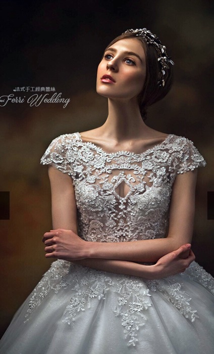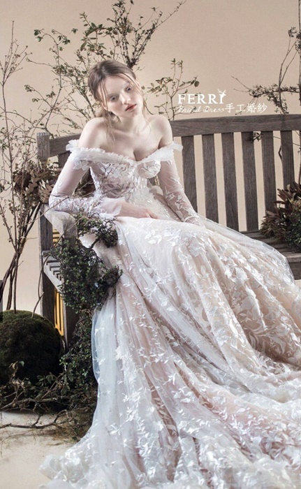肩膀、腰部、比臀圍寬、整體豐腴的類型這類型的新娘通常都會有手臂較粗的困擾,但只要挑選到適合的款式,就能轉移對於手臂的注意力