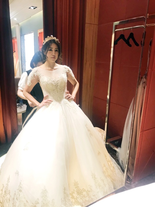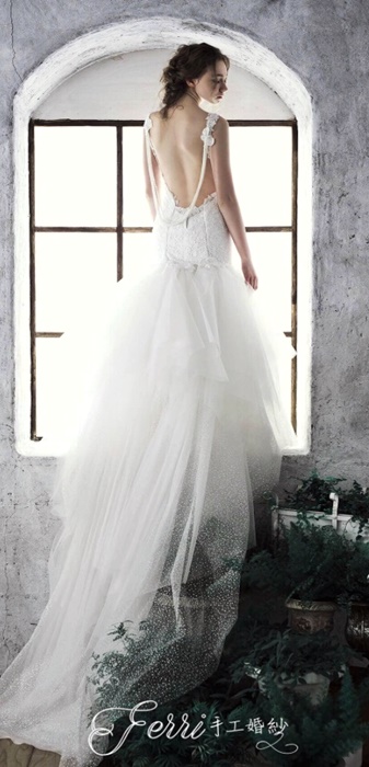 看妳的身型適合挑選怎樣的拖尾婚紗XDDDDD |