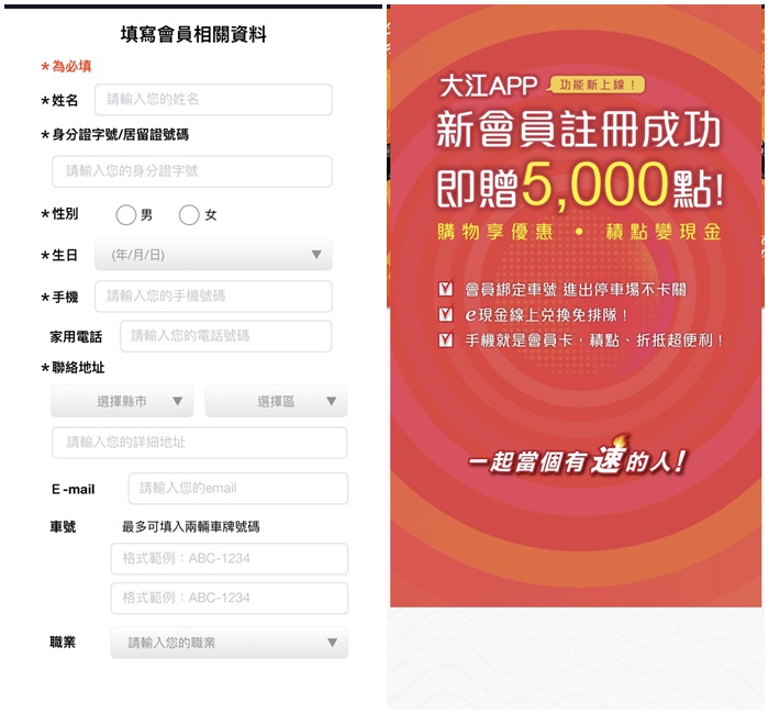 | 輸入你的資料後就可以了,重點是一定要輸入車號,而且新會員註冊成功就馬上送5000點,這也太大方了吧!!!! |