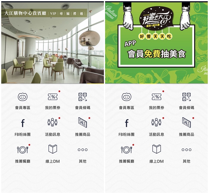 | 如果你喜歡吃美食更要下載大江購物中心的APP,因為畢竟都來這邊就是要吃飯了阿,APP裡面有很多隱藏版的優惠眷跟活動,可別傻傻的就錯失這些省錢小妙方,一切的隱藏版折扣通通都在大江購物APP裡面XDDDDDD |