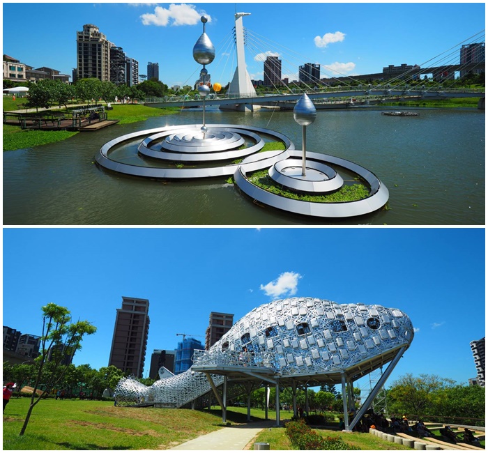 維持著陂塘既有調節洩洪功能的青塘園區,亦打造為民眾親水的場域,曾靖婷與青埔國小從對水循環的觀察,作品「the Circle」象徵人與自然相互依存;朱威龍與青埔國中還原風及光影對話,在「海市蜃樓」作品中折射出似幻且真的畫面;劉經倫與芭里社區把對於多彩流動的雲光、水流的印象,輝映在自然景致中,創作了作品「印象—雲水草間」。