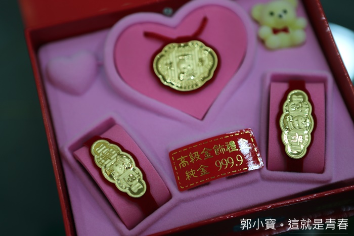 | 後來我真的要送給朋友小孩滿月的金飾我就沒再去過銀樓買了,都會直接來久大御典品這邊買,因為我個人真的跑過很多銀樓比過價,多少都是依照當日金價在加收工錢,怎麼算怎麼買都還是比久大御典品直接以當日金價賣來的貴,所以來這邊買才室內行人的買法XD |