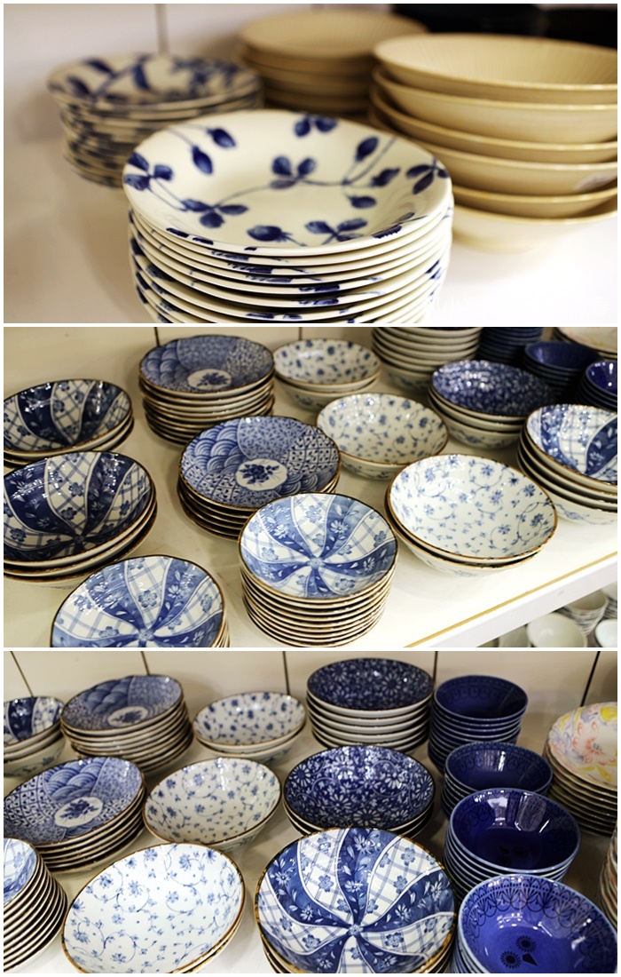 | 超多經典的藍釉碗盤都很值得挑選,但是這些我家中已經有一堆了,就是很正統的和風風格,藍釉花盤是每個購買日本餐具的入門款,玩上癮之後你就會愛上日本的藍釉餐具,然後瘋狂追逐四色藍釉餐具,我就是這樣迷上的XDDD