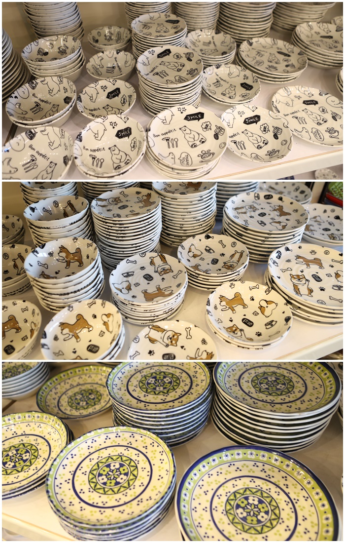 當天看到超多廠商都是拿籃子在掃貨,而且一掃就是一整個系列各尺寸在掃貨,僑俐瓷器每一個系列都會下訂各個尺寸,不管是盤子還是碗都會有各種尺寸可以讓大家挑選,如果你晚來一步就可能挑不到你喜歡的尺寸,但是也別氣餒,因為通常尺寸不全的系列闆娘就會開始下殺大出清,早買早享受晚買可以享折扣XDDD