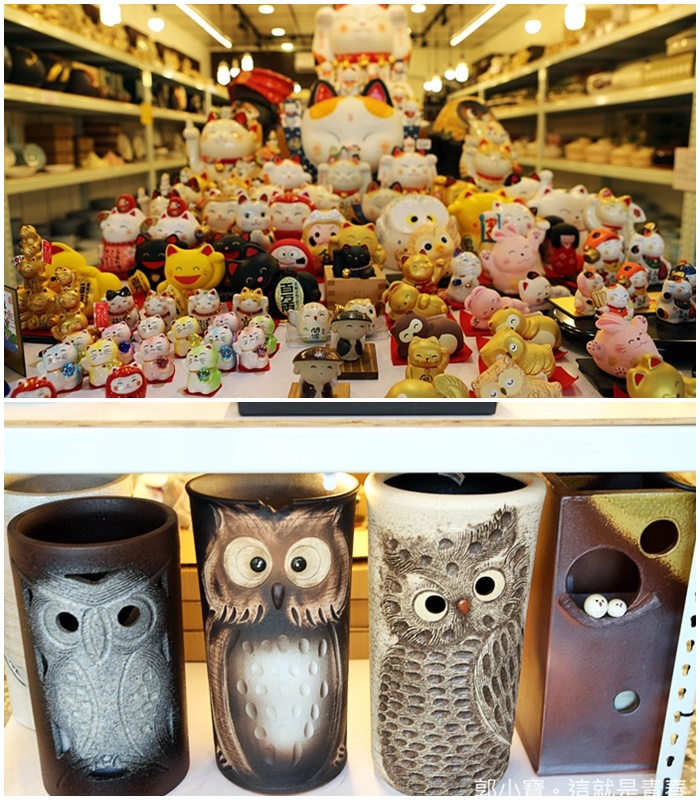 一進口就可以看到成堆的招財貓,這不只是很多餐廳最愛買的擺飾物,也是很多喜愛貓咪的朋友最愛收集的商品,想買到大大小小道地日本製造的招財貓來僑俐瓷器就對了,還有底下的貓頭鷹置傘桶也很吸睛,貓頭鷹算是日本很傳統的吉祥物,不管在家裏面還是店內擺放這樣的傘桶瞬間整個質感都上升了!!