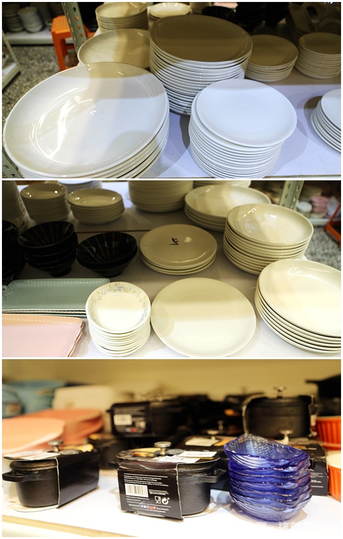 | 後面這一區真的都超便宜的,但是碗盤的尺寸當然也是比較少的,就是沒貨了才會拋售阿,但是有一些其實也很不錯啦,會挖寶的人當然就知道用最便宜的價格挖到最超值的餐具,反正都來一趟了,真的別錯過任何角落! |