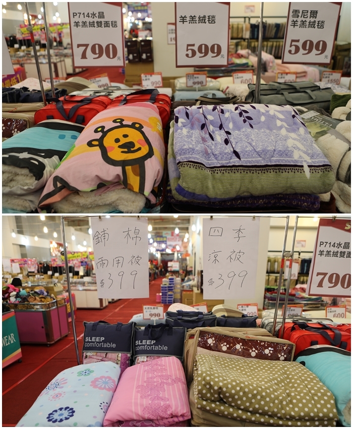 | 還有準備四季涼被及羊羔絨毯給大家採購,價格都在幾百元就可以入手的便宜價格,他們家千萬別看價格殺那麼低就以為沒好貨,質料真的都很好,一定要來現場摸過才知道真的都是值得入手的好被子。 |