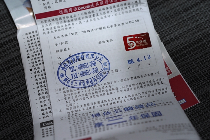 | 提供五年的保固,現在更霸氣全商品保固自動延長一年,所以我的血壓計就有了六年的保固,用了幾天下來真的非常的喜歡,推薦! |