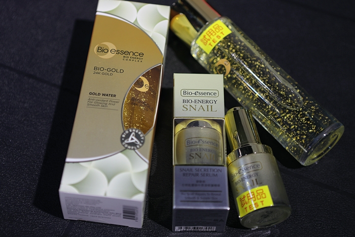 BIO金萃黃金精華露跟碧歐斯 生物能量蝸牛原液修護精華也是非常搶手的商品,尤其金精華露裡面的金箔看起來就超級霸氣的,這次廠商也很通通都有準備試用品給水水們親自感受一下!!