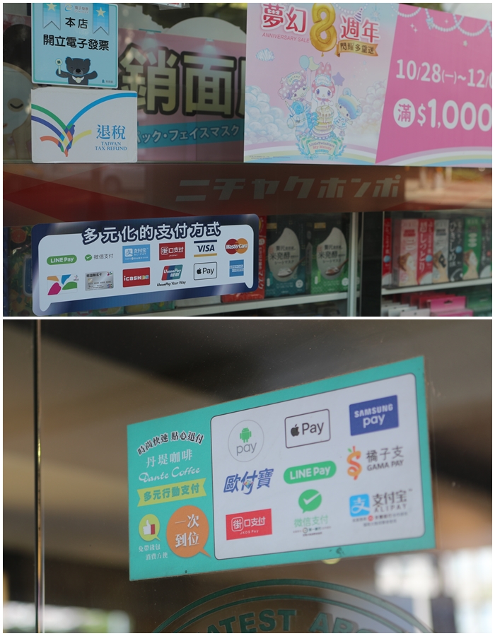 | 現在的文宣貼紙真的越來越多,我都在想以後店家的整個玻璃門會不會被各種平台跟活動整個貼滿,但是現在真的付費的方式變多了,電子貨幣的時代真的已經來臨了。 |