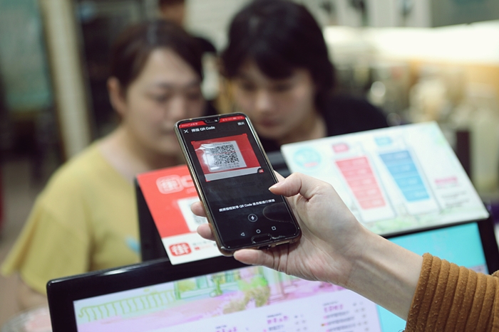 | 這一張貼紙就是這一次商圈活動的主視覺LOGO貼紙,今年年底以前只要到全台200多個商圈使用行動支付最高都有20%的回饋。 |