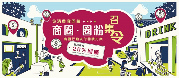 | 為了提倡行動支付,經濟部與行動支付業者共同攜手推出「你消費.我回饋-商圈圈粉召集令」活動。