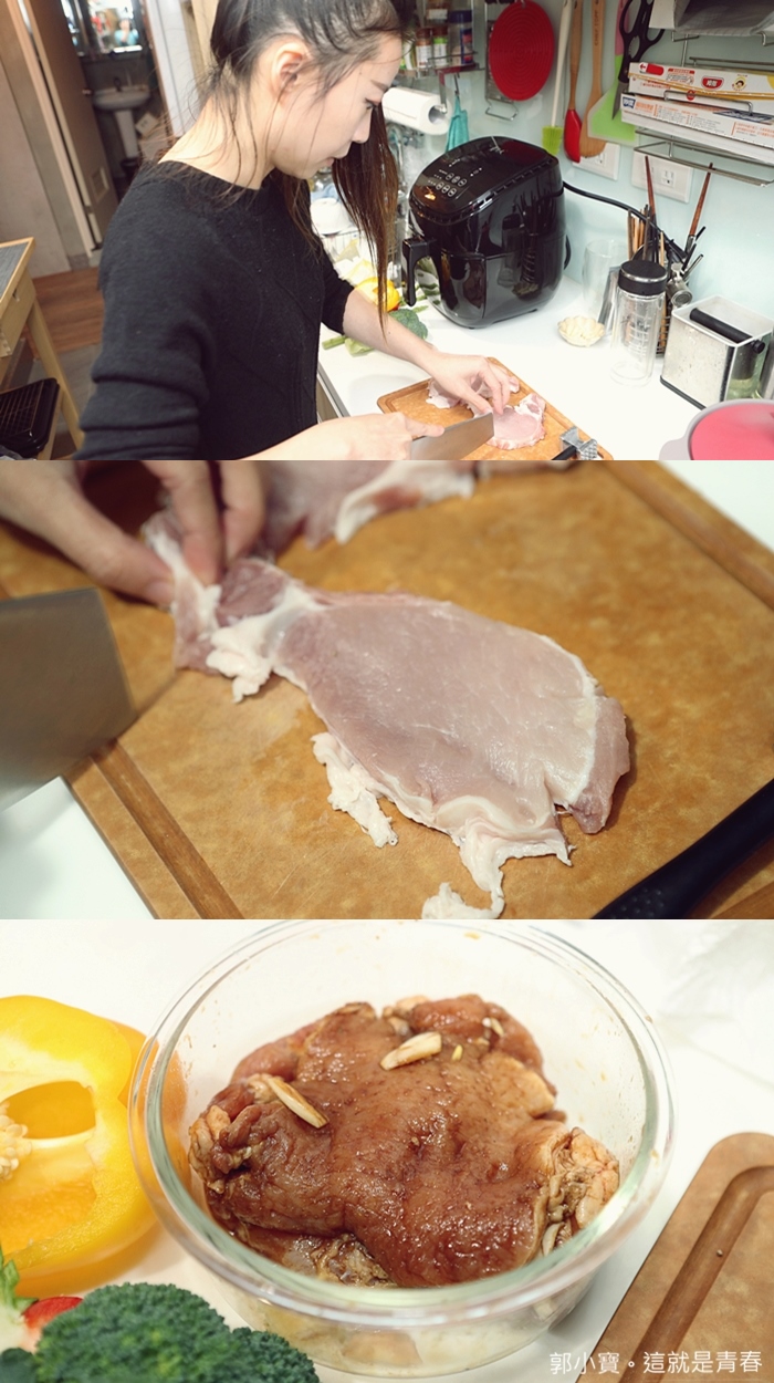 | 炸豬排是我老婆知道我愛吃,所以常常會在家裡面炸豬排給我吃,但是每次都要用一堆油炸,有時候還會被燙到,但是有了這一台氣炸鍋真的就變得超豐變得,先將買來的豬排斷筋然後醃製。 |