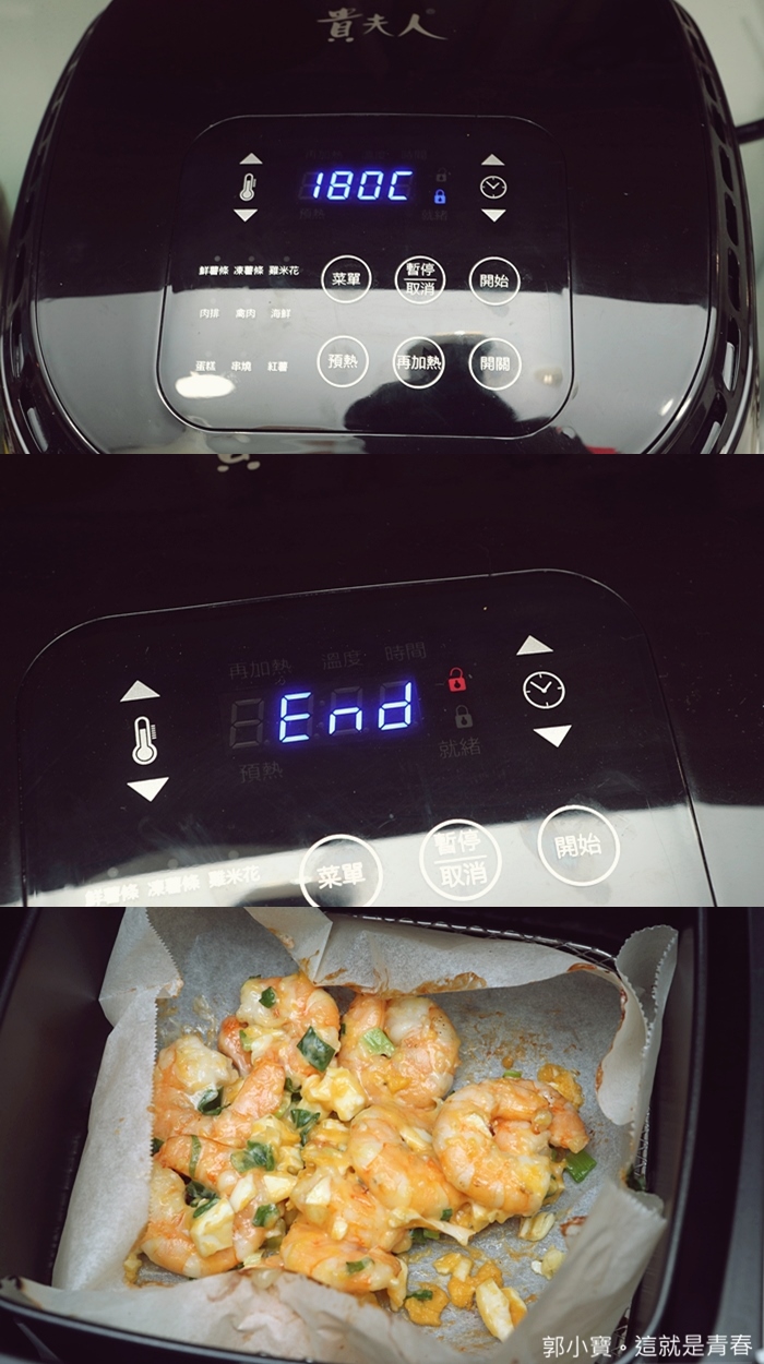| 氣炸完的蝦子就讓我已經蠢蠢欲動了,這氣炸鍋不管處理什麼食材顏色真的都很漂亮,是我目前看過不管炸任何食材都可以精準的掌控溫度的一台。 |