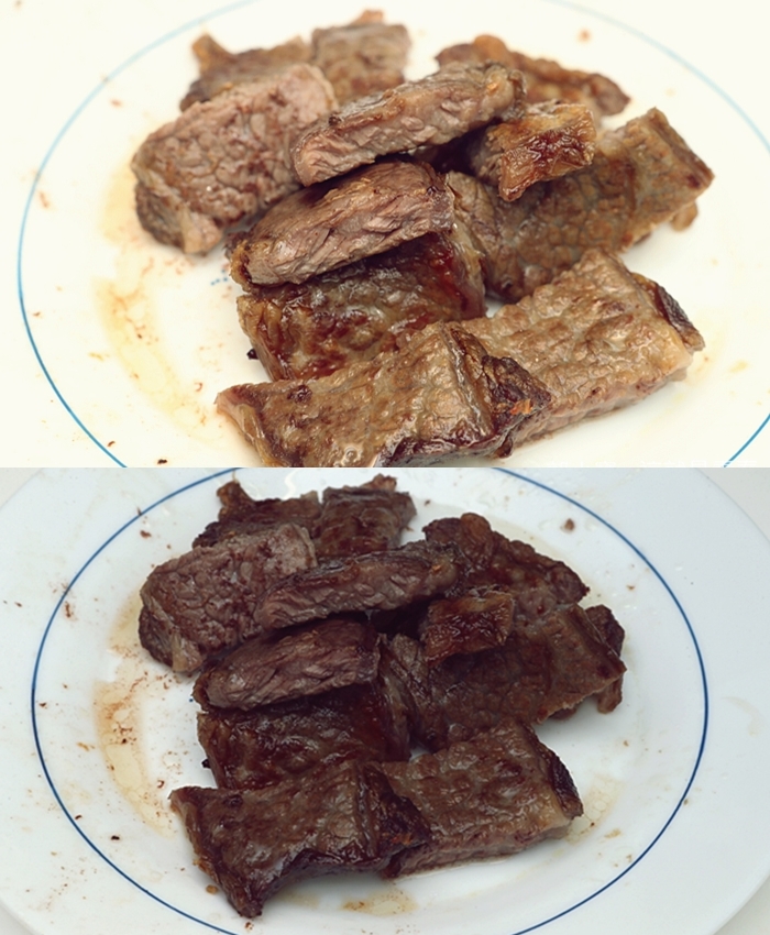 | 出來的成品剛好是全熟的牛肉,但是一口咬下來是依然肉汁噴發,沒有因為較熟導致牛肉過老還是乾柴,依然美味。 |