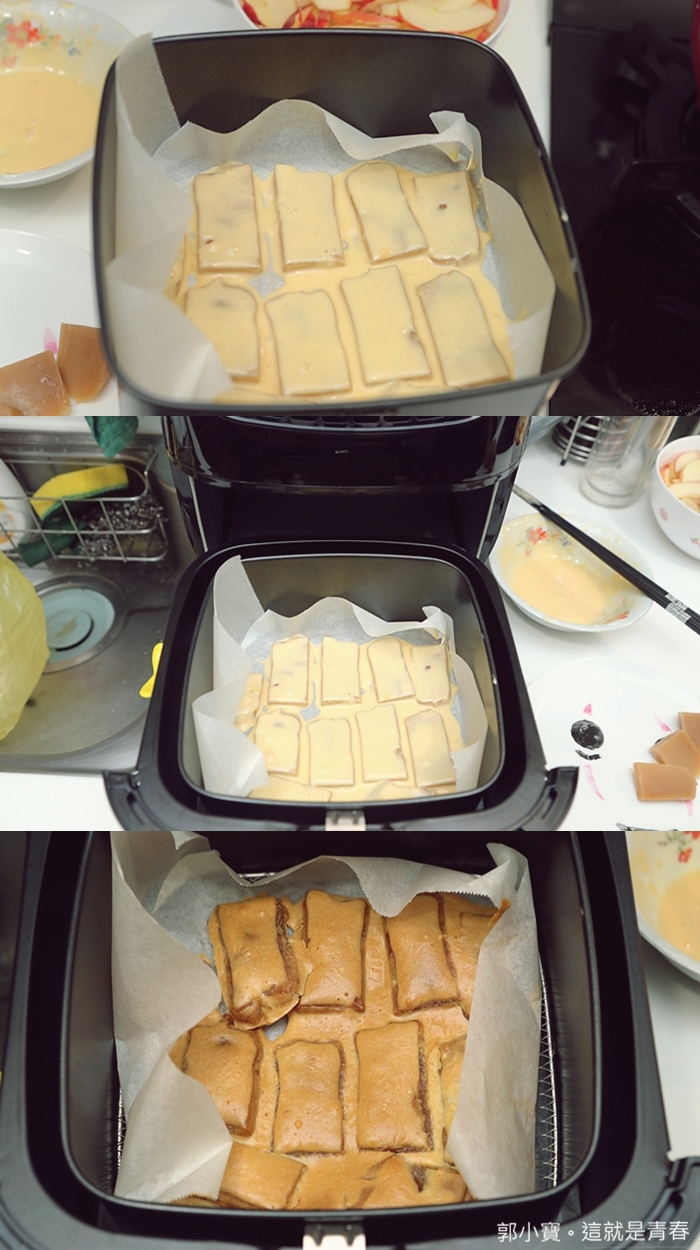 | 最後一道就是炸年糕了,年糕也是我女兒喜歡的零食之一,現在女兒的零食幾乎我都用氣炸鍋處理給她吃,改天來試試看雞蛋糕好了,將年糕混合麵粉跟蛋黃放入氣炸鍋中,調整180度15分鐘,出來的顏色也是金黃色超漂亮的。 |