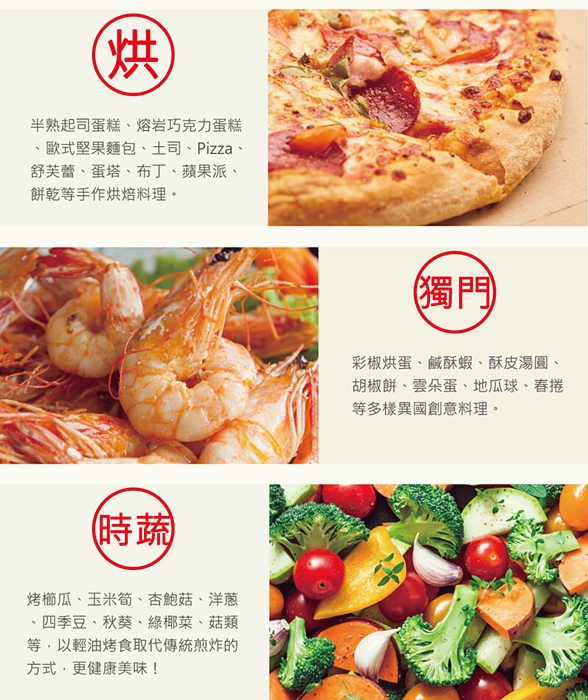 只需少量油脂即可完成多樣料理,顛覆傳統煎、烤、炸、烘焙等料理方式,不只保留食材風味,更讓廚房及餐廳的空氣不再充滿油耗味