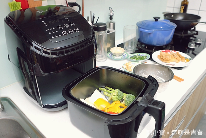 氣炸鍋夯到不行的主因就是可以減油80%,降低油脂的攝取量,代替很多油炸食品會帶來的高油量,且操作簡單就連我這種大男人都可以使用氣炸鍋做出一整桌的佳餚,種底是鍋具跟油網都是安心無毒不沾塗層、材質不會受到高溫變化非常安心。