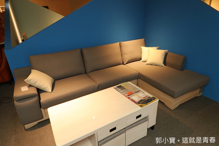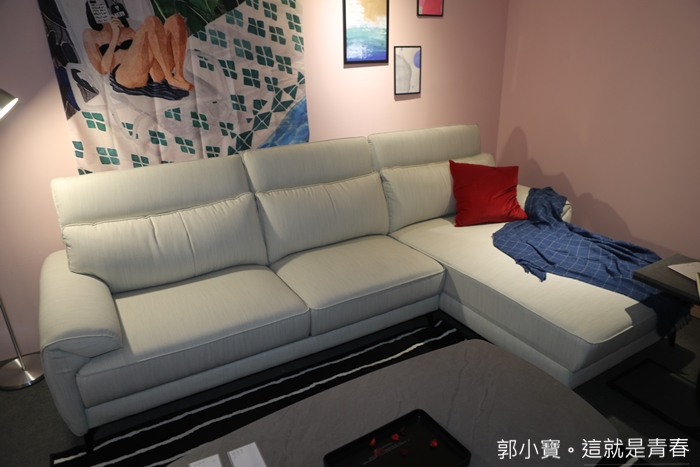 小家庭很適合的L型沙發,雖然設計成兩人坐的感覺,但是可以紮紮實實的坐上三個人,加上椅角可以坐到四個,視覺感上很適合小家庭,不會感覺很擁擠。 |
