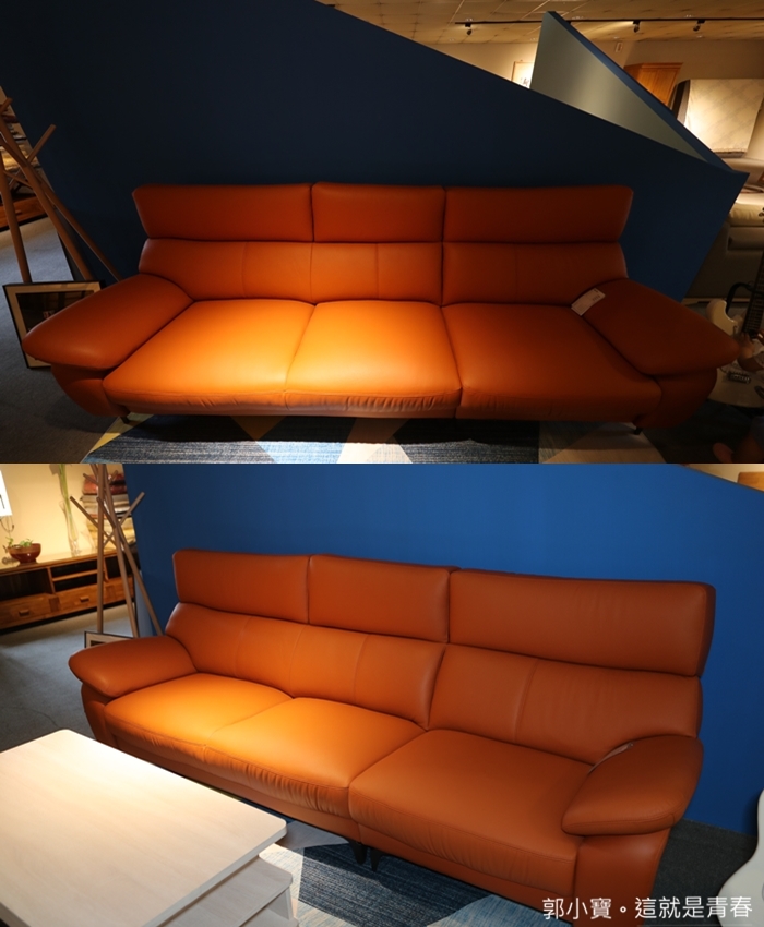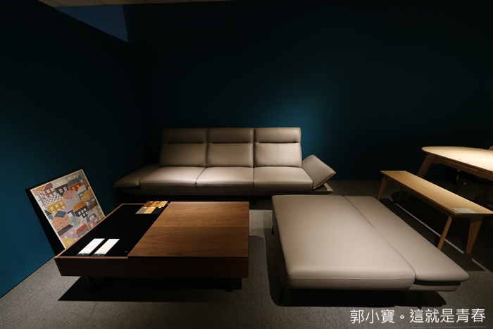 這天我最喜歡的其實是這一張沙發,如果家裡的客廳稍微大一點的朋友可以考慮這一張沙發,俐落的設計真的很美,扶手可以調整平放增加座位空間,還有超大的一字椅腳,重點椅腳還可折疊出背靠,彷彿又瞬間變成一張一字沙發,真的很美又很好運用的一張沙發。 |