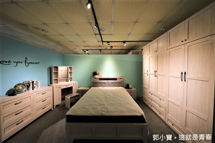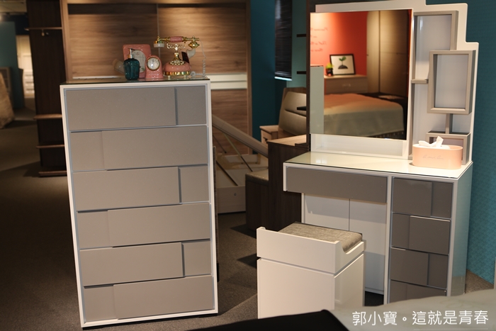 | 像如果我們早一點來慶和家具的話,這房間一整套我們就直接搬回家了,從衣櫃到床架還有雙斗櫃跟化妝台都超美的,而且收納空間都設計得很好,顏色也走北歐風格,真的很美啊!!! |