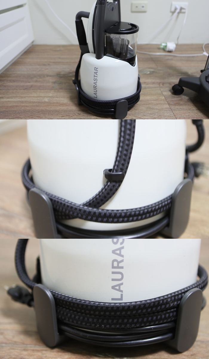 | 收起來放在房間也超美觀,線材不會四散,立腳的重心非常穩,且線材可以收的非常整齊,纏線形式的收納裝置,可將蒸汽軟管與電源線纏繞收納於機身旁。 |