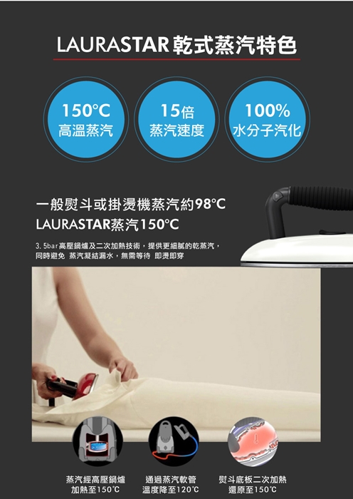 • 乾式蒸汽技術: 呵護細緻服飾面料