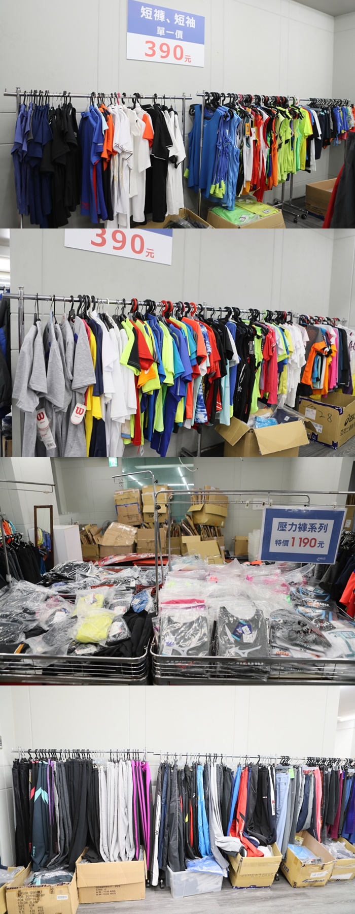 | 機能性服裝全面下殺,款式多尺碼齊全,有固定保持運動的朋友通常消耗量會比較大,可以趁這次便宜的廠拍會多入手幾件替換,專門的運動排汗衫也全面下殺五折,我個人是沒有穿過他們家品牌的服飾,但是布料摸起來的感覺相當不錯,款式也很多。 |