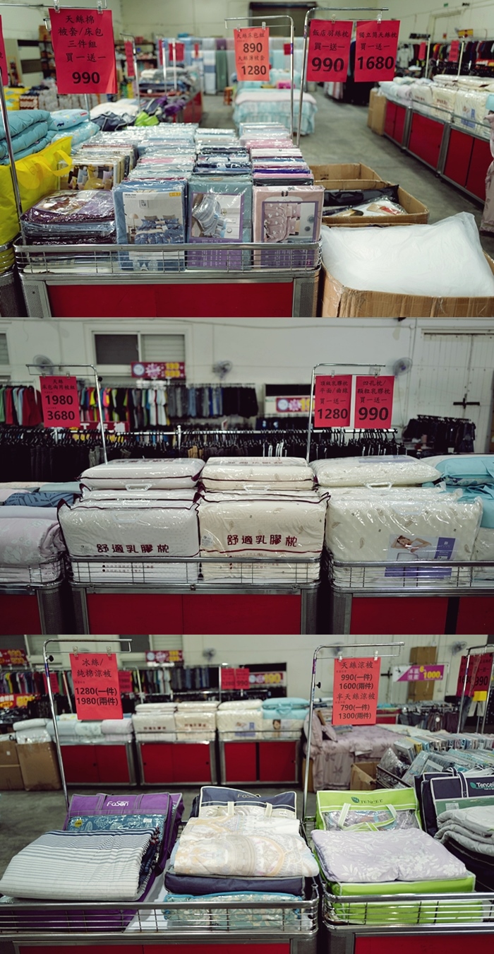 | 超多寢具都是超划算的價格來這邊出清,寢具這類型的商品我個人還是很推薦一定要親自到場試躺試摸最準確,品質好壞現場一摸就知道,價位真的非常划算,販售的寢具商品種類也非常多。 |