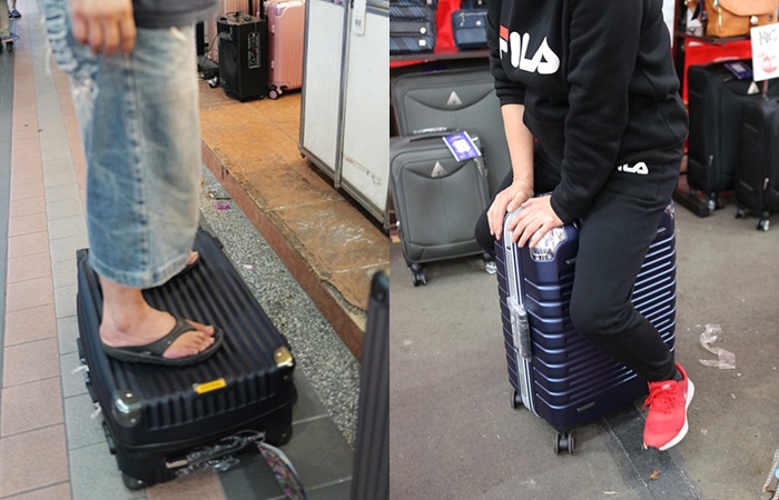 | 禾雅販售的行李箱老闆自己都會測試過,確定是好的品質他們才會販售,一個大人不管用站的用坐的都不破破裂真的非常讚,品質很好。 |