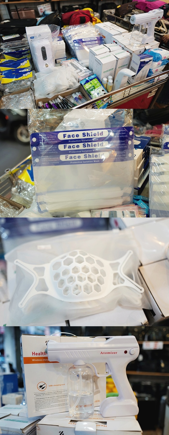 | 另外門口處還有兩台花車都是抗疫商品,除了我們家也屯一堆的防護面罩以外,還有酒精消毒噴槍也是必買,口罩支架也很實用,防護眼鏡等等的應有盡有,價格也都很實在!!! |
