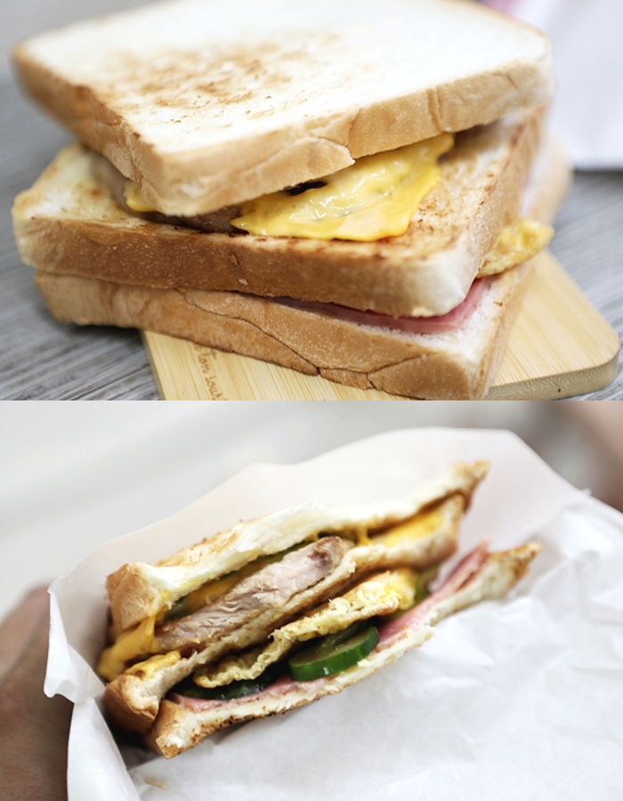 | 外婆家的三明治真的份量非常足,裡面的餡料也真的非常敢下敢給,一口咬下的口感十分紮實,濃郁的起司香氣搭配小黃瓜的水分還有蛋香及豬排,讓人非常滿足。 |