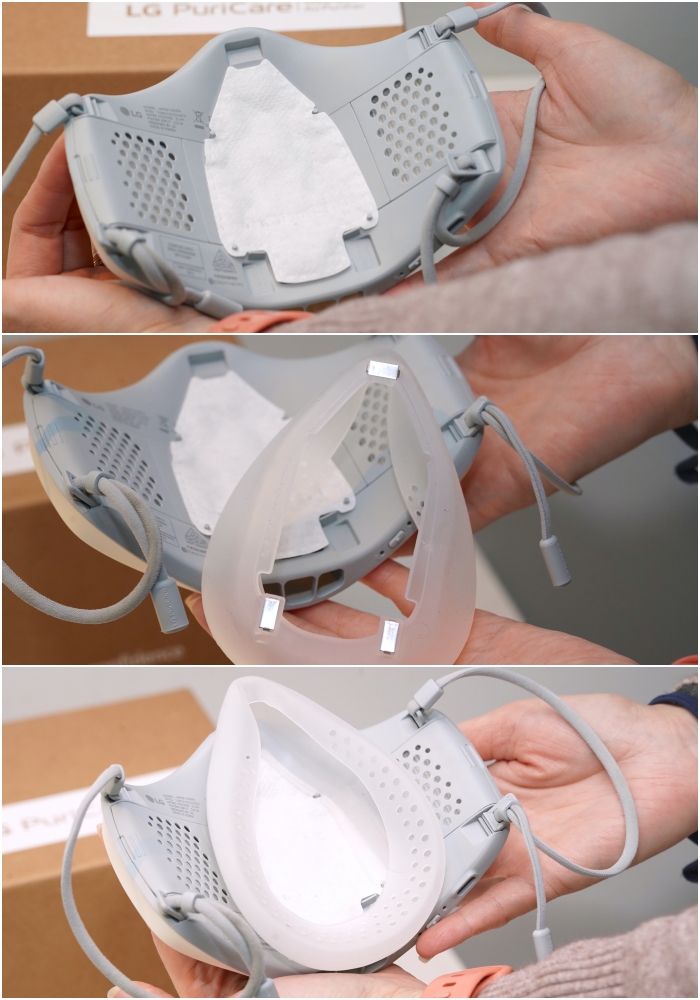 因此近期入手 LG PuriCare 口罩型空氣清淨機第二代 AP551AWFA(質感白)來幫助我們安心監工,細心打造夢想中的家。LG PuriCare 口罩型空氣清淨機第二代對比第一代的產品設計更簡潔俐落,機身重量更輕,內建防護濾網過濾空污,並且增加 VoiceON 語音清晰功能,戴著口罩也能溝通無礙。一般人可當成行動空氣清淨機使用,像是燒烤師傅、裝潢師傅也都適合配戴,降低髒污空氣帶來的健康疑慮。