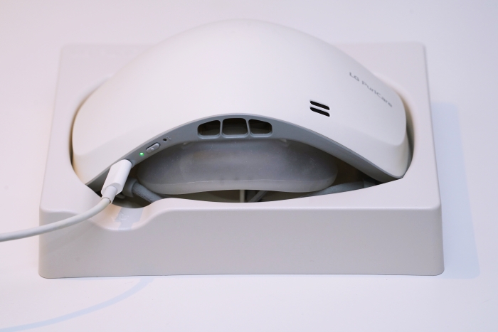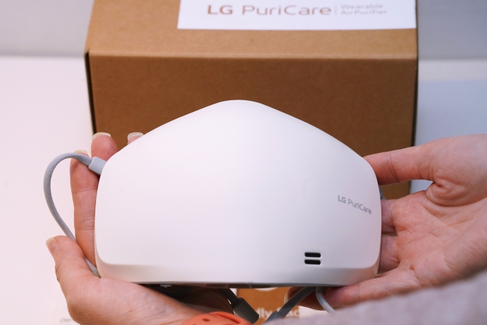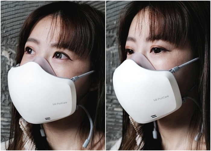 LG PuriCare 口罩型空氣清淨機人體工學設計的線條順著口鼻達到舒服的貼合度,減少漏氣,讓臉部處於乾爽通風狀態,也解決眼鏡族因長時間戴口罩,眼鏡因為口鼻呼氣而產生霧氣的狀況。