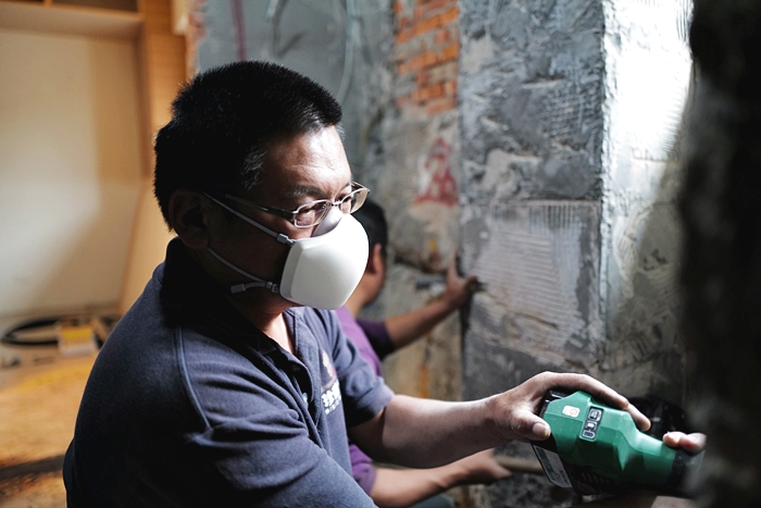 從開始進行新家裝潢後,我與太妃幾乎每天都親自前往新家緊盯工事進度、紀錄裝潢過程,每個細節都不放過,也學到很多經驗,其中光是將二樓拆除,就前後花了半個月以上,後續還將進行浴室的防水工程。由於新家空間較大,相對工期時間拉得更長,也代表我們會長時間穿梭在充滿粉塵的環境。