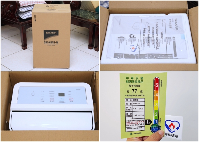 這次開箱的 SHARP 夏普 8.5L 公升高效除濕機( DW-K8NT-W ) 主打衣物乾燥功能,在冬季日照相對少的季節就成了我們晾衣服的好幫手,有些衣服質料不適合烘乾時,就可使用 DW-K8NT-W 的大面積除濕功能讓衣服迅速乾燥。由於有四種除濕模式,因此用於平時的除濕也相當便利,重點是售價非常好入手。