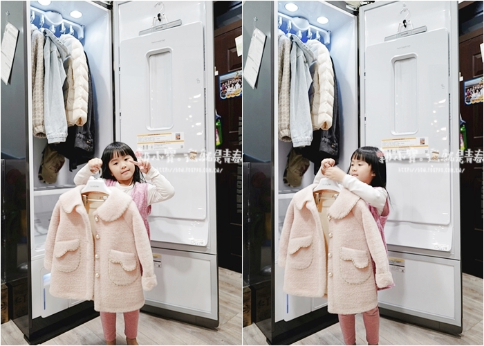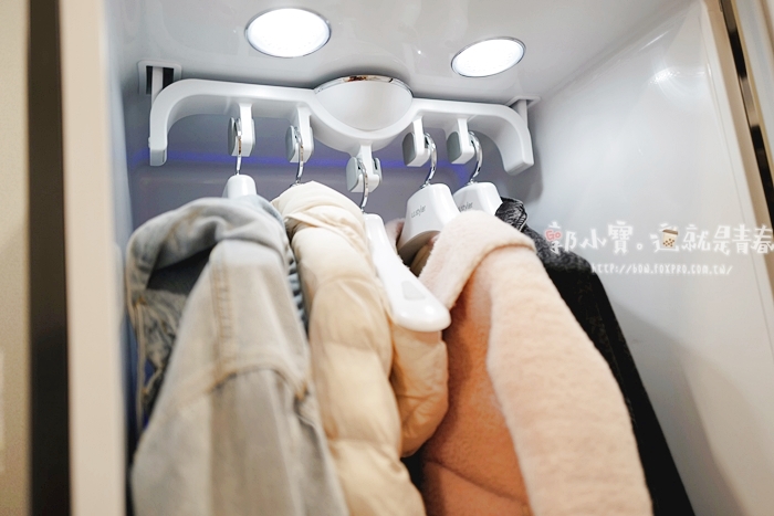 | 最重要的就是女兒的外套,女兒最近上幼稚園根本是病毒碼的大本營,他幾乎每個禮拜都再更新病毒碼,感冒好了又發燒、發燒好了又流鼻涕、鼻涕好了又咳嗽,一直陷入這樣的無限輪迴中,所以他的外套書包我們也都會放到電子衣櫥內消毒清潔! |