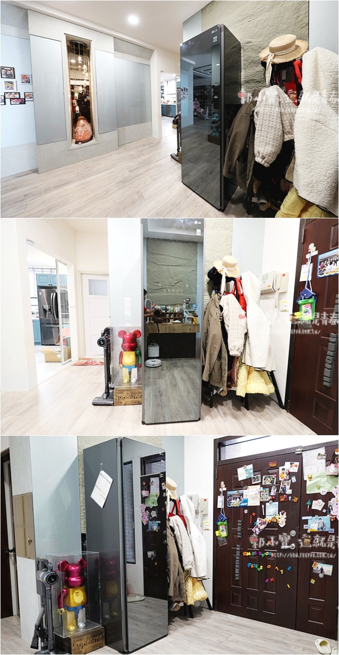 | 目前LG電子衣櫥使用的是抖動落塵,所以我們最主要放在玄關的用意就是把比較常穿的衣物直接可以消毒清潔去味為主,偶爾比較貴重的衣服才會拿下來輕乾洗。 |