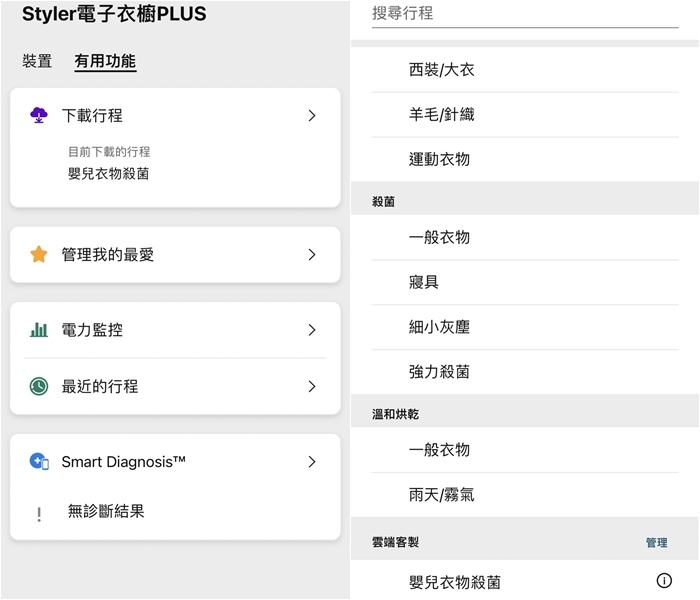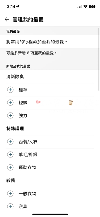 | 也可以直接添加你最常用的幾款行程,不然LG電子衣櫥的衣物行程超級多,加上一直有在維護更新,最早的時候衣物行程還沒有那麼多,默默的就發現,怎麼越來越多選擇,有時候也看的我們眼花撩亂! |