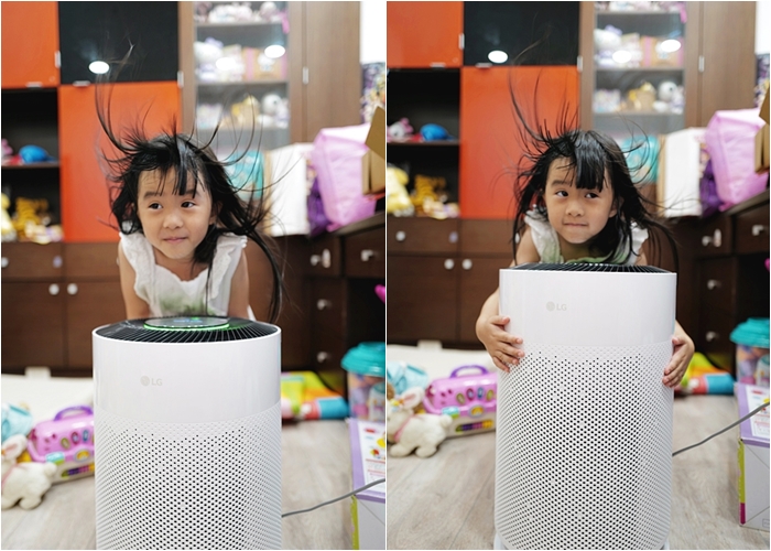 | Cola的遊戲室也是有固定一台空氣清淨機,因為她的遊戲室最多的就是絨毛娃娃,家裡的絨毛娃娃大概超過百隻,絨毛娃娃很容易推積灰塵,所以放在遊戲室的作用也相當大,常常翻箱倒櫃的拿玩具出來,肉眼都可以看到翻箱倒櫃的時候有灰塵飛散出來了,但是瞬間就會被超淨化大白空氣清淨機-Hit一吸而盡。 |